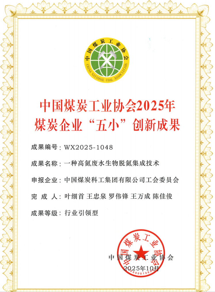 从实验室到工程现场,从技术突破到行业认可,此次获奖标志着杭州研究院在水处理领域的技术领先地位。未来,杭州研究院将持续深化落实集团公司“1245”总体发展思路,秉持让工业更洁净的企业使命,深化与各类型企业的合作,推动该技术向非煤矿山、煤化工等行业延伸,探索智慧水务与低碳技术的融合路径,致力于为客户创造价值,成为工业环保治理的引领者,为行业绿色转型贡献更多“煤科智慧”。