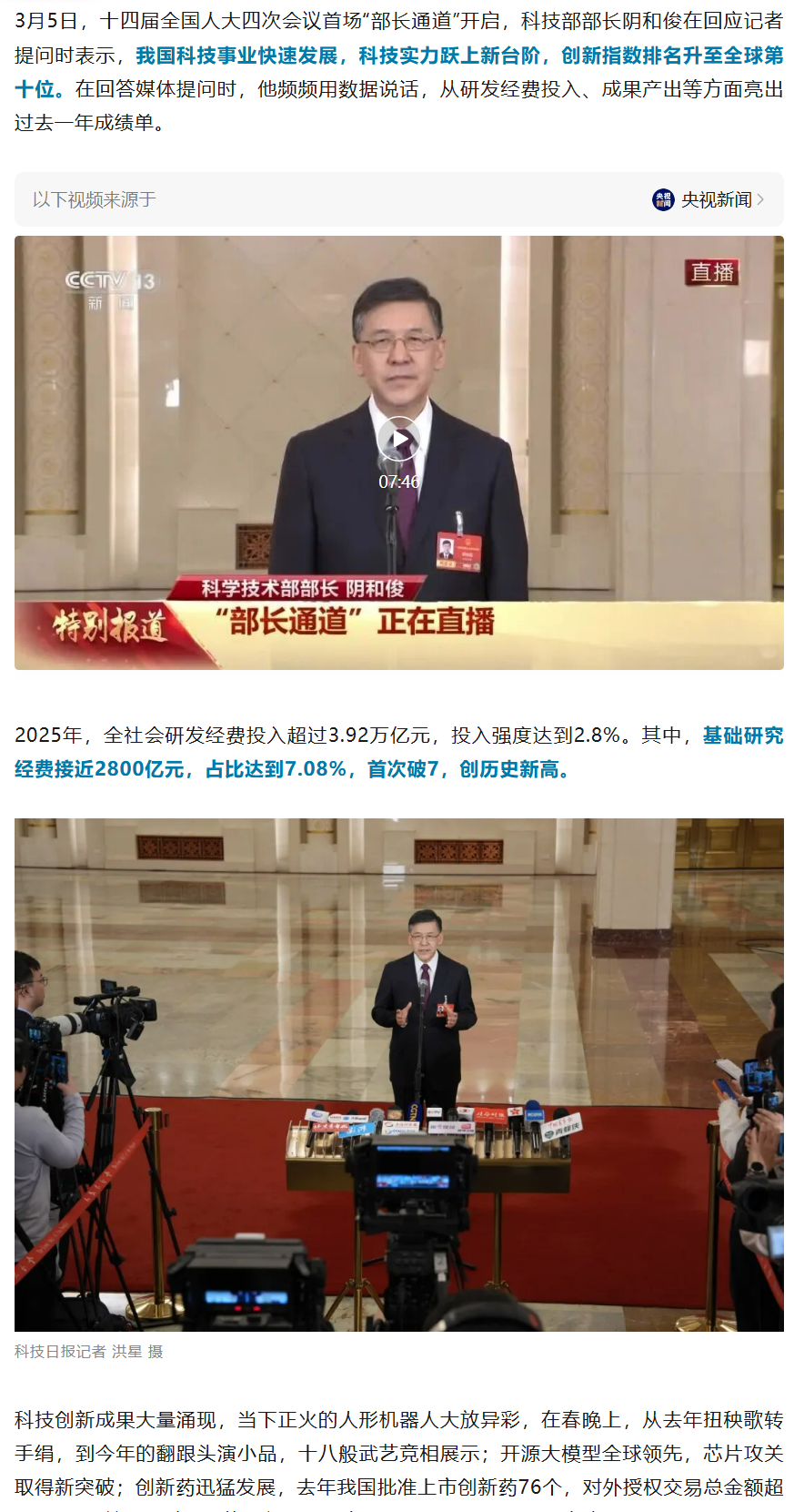 摘 要:科技部部长阴和俊:我国科技实力跃上新台阶