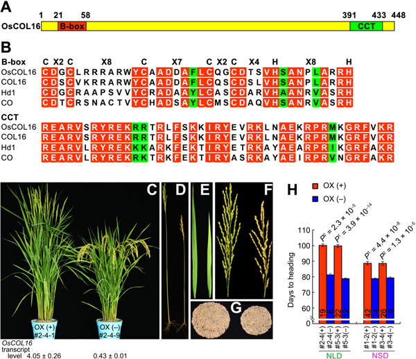 近日,中国水稻研究所分子育种团队成功克隆了一个控制水稻抽穗期的基因OsCOL16。研究发现该基因编码一个CONSTANS-like蛋白,在长日照和短日照条件下均表现为延迟抽穗,同时增加株高和产量。OsCOL16上调开花抑制基因Ghd7的表达,导致Ehd1, Hd3a和RFT1基因的下调表达,从而抑制开花。
