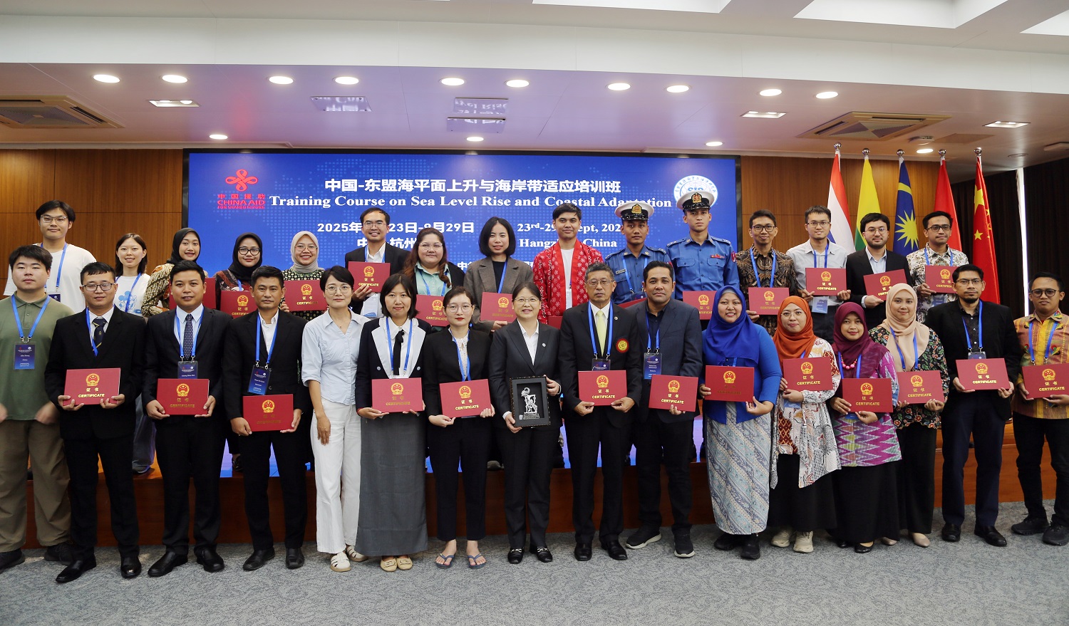 日前,由商务部主办,自然资源部第二海洋研究所承办的“中国-东盟海平面上升与海岸带适应培训班”圆满结业,方银霞出席结业典礼并为全体学员颁发结业证书。
