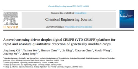 为了解决这一技术难题,该团队开展了多年科研攻关,近日在《Chemical Engineering Journal》(IF=13.2)上发表了题为“A novel vortexing-driven droplet digital CRISPR (VTD-CRISPR) platform for rapid and absolute quantitative detection of genetically modified crops”的研究论文。该研究突破了传统转基因绝对定量依赖大型昂贵仪器的瓶颈,实现了轻简化转基因成分的绝对定量。