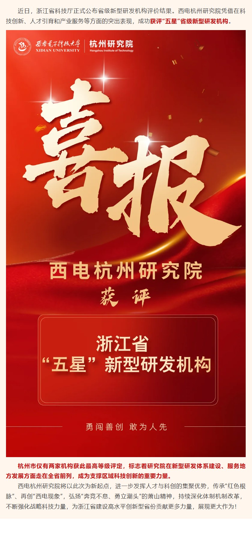 最高级!西电杭州研究院获浙江“五星”认证