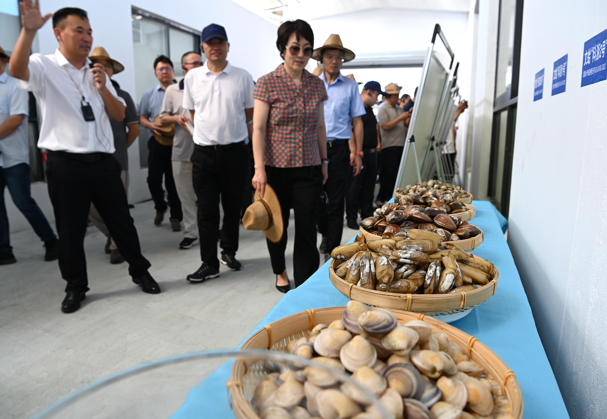 浙江省海洋水产养殖研究所党委书记、所长闫茂仓现场介绍,该研究所立足温州,辐射全省,主要开展一虾(南美白对虾)、一鱼(大黄鱼)、两藻(坛紫菜、羊栖菜)、四贝(泥蚶、文蛤、缢蛏、青蛤)品种选育和繁育工作,系统性构建了从种质资源保存到良种选育、优质苗种繁育再到示范推广的全链条技术体系。