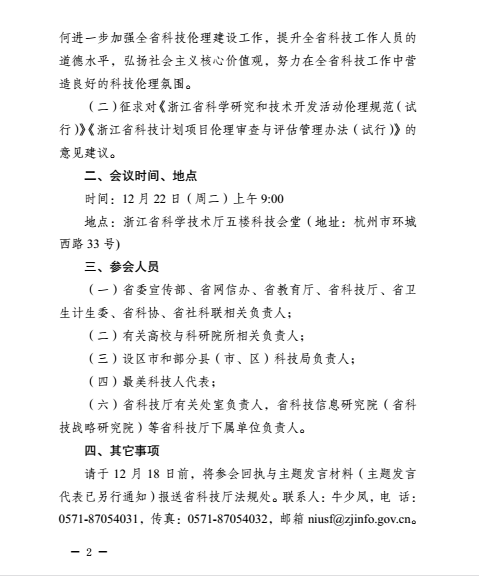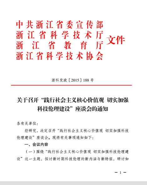 摘 要:关于召开“践行社会主义核心价值观 切实加强 科技伦理建设”座谈会的通知