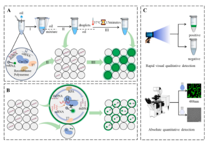 为了解决这一技术难题,该团队开展了多年科研攻关,近日在《Chemical Engineering Journal》(IF=13.2)上发表了题为“A novel vortexing-driven droplet digital CRISPR (VTD-CRISPR) platform for rapid and absolute quantitative detection of genetically modified crops”的研究论文。该研究突破了传统转基因绝对定量依赖大型昂贵仪器的瓶颈,实现了轻简化转基因成分的绝对定量。