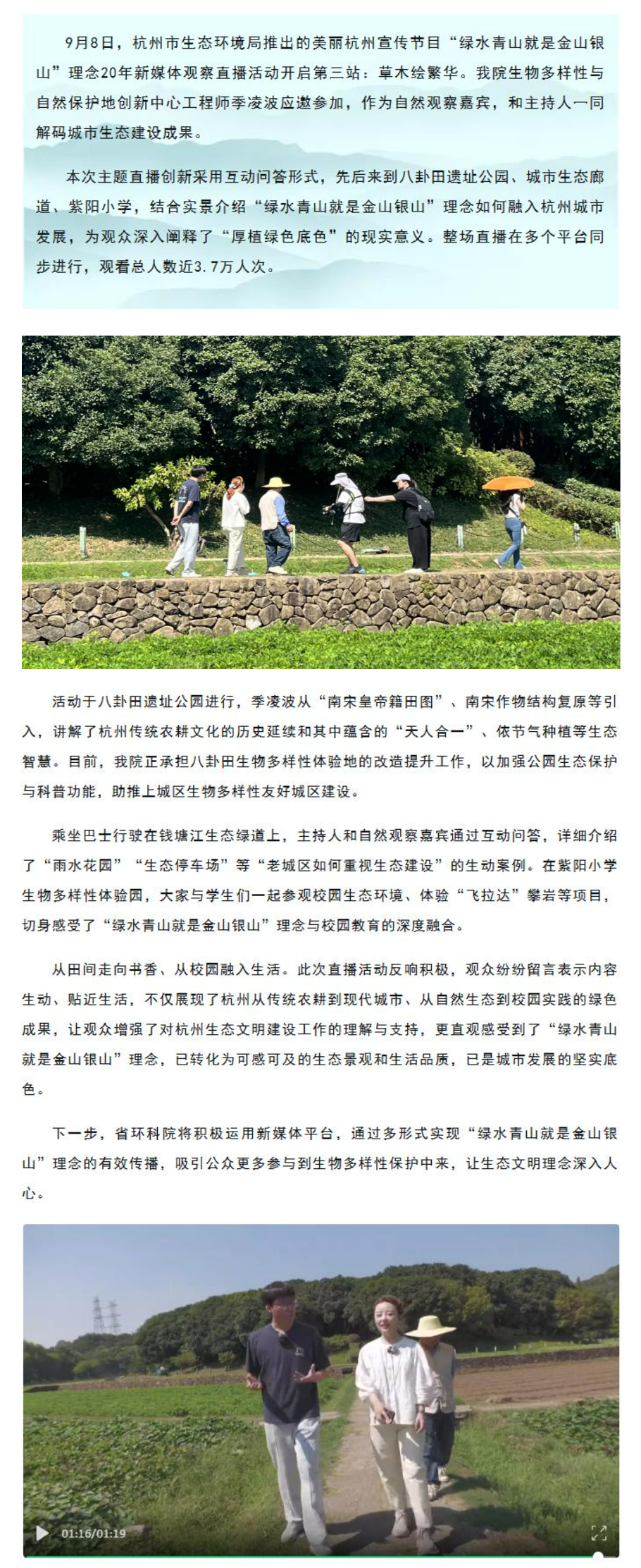 关键词:省环科院融入新媒体展现城市生态建设成果