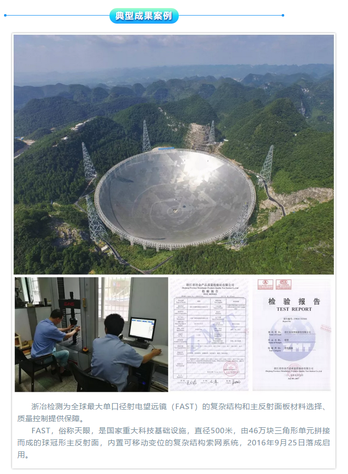 杭州国际奥体博览中心、上海迪斯尼、鸟巢、水立方、广州电视塔、三门核电站、迪拜跑马场……从国内到国际,一个个耳熟能详的标志性建筑的钢结构质量保障都倾注了冶金院技术人员的心血。2016年圆满完成了我国重要科研基础设施——全球最大射电望远镜——中国天眼所有金属材料的质量把关任务。今年又中标国家质检总局监督抽检任务,分赴13个省开展7大类315批次金属材料监督抽检工作。