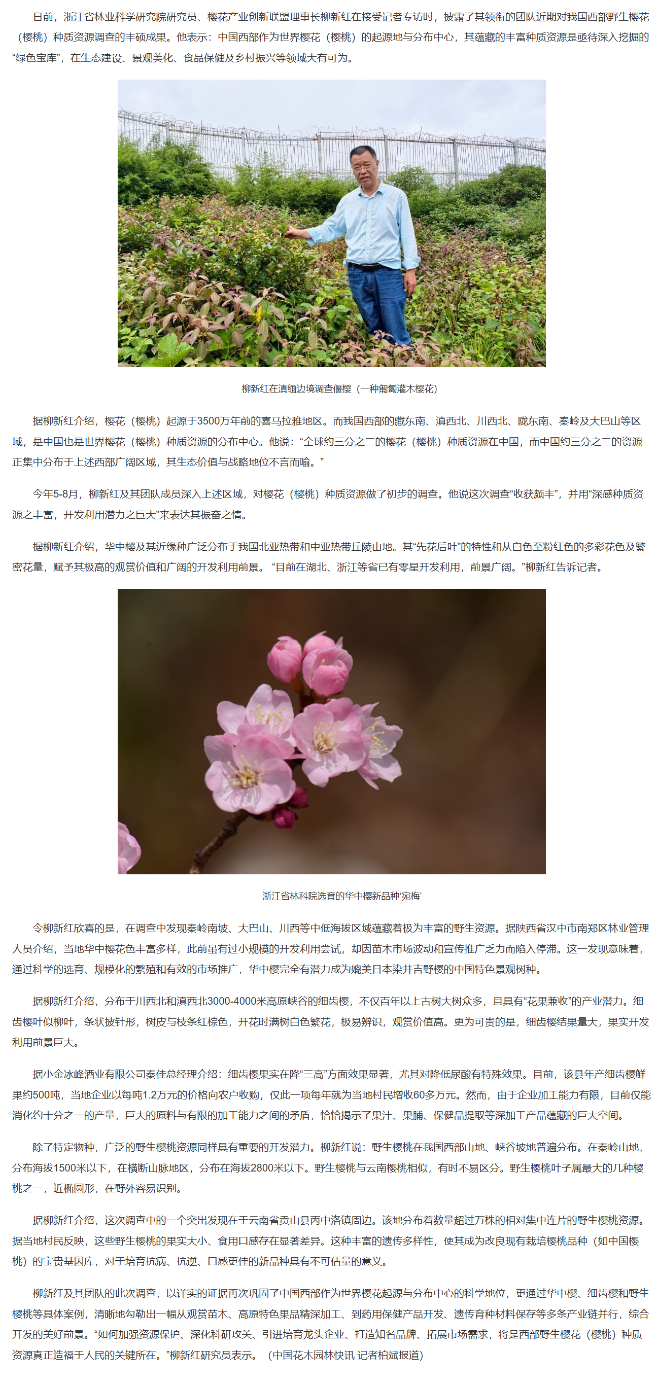 摘 要:从“观赏”到“富民”!我国西部野生樱花资源开发利用潜力巨大